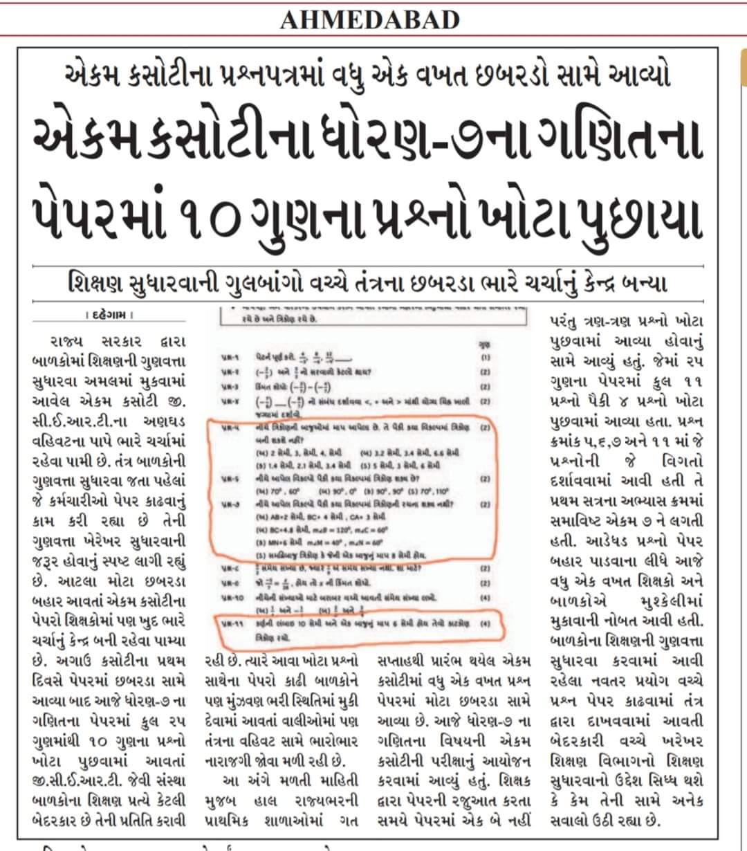 STD-7 GANIT UNIT TEST NA PAPER BABAT VANCHVA LAYAK SAMACHAR PAR EK NAJAR.